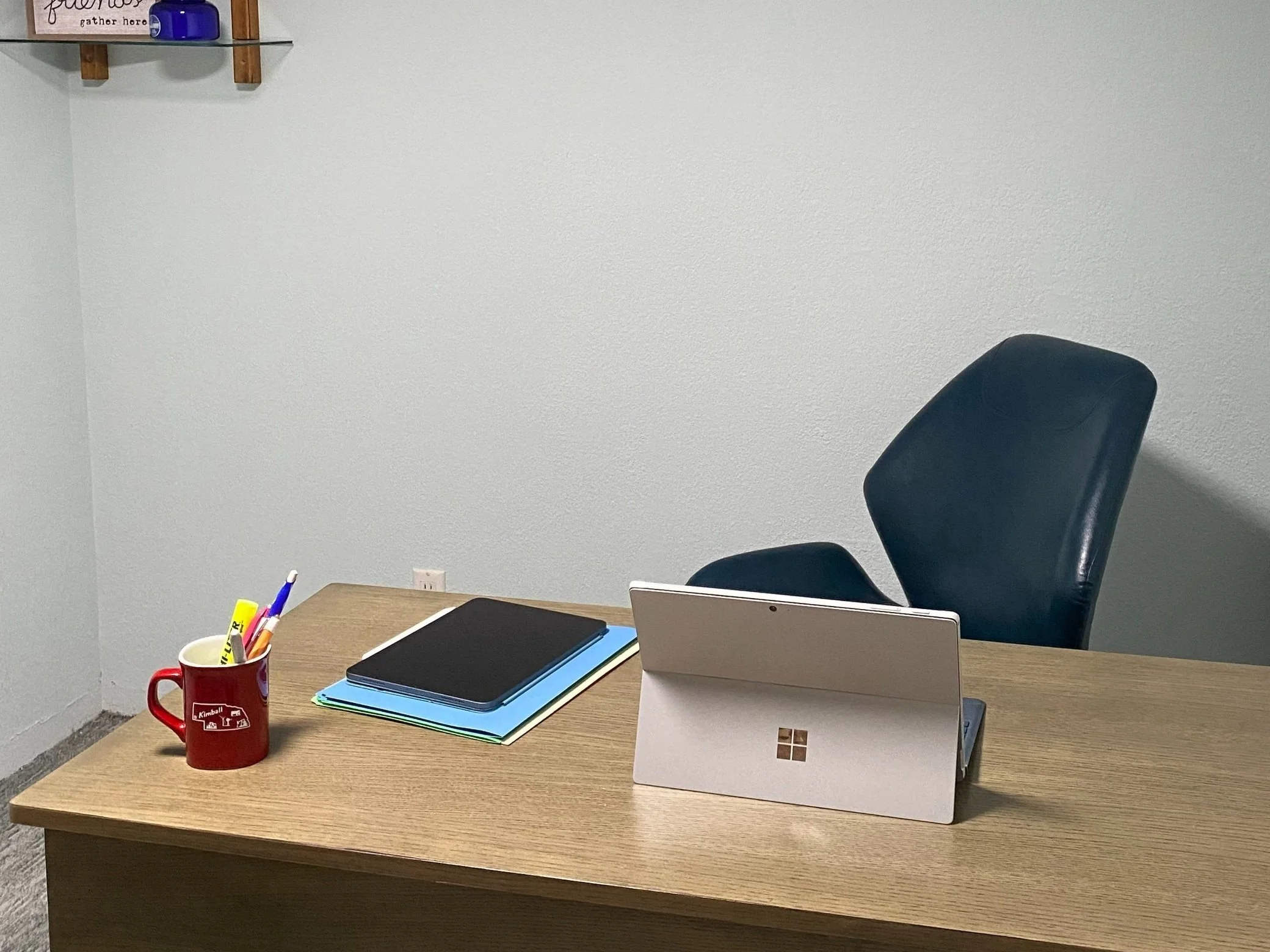 Offices offer a private, comfortable space with a sit/stand desk, a guest chair, and collaboration tools. This room is a blank slate ready for your innovation.